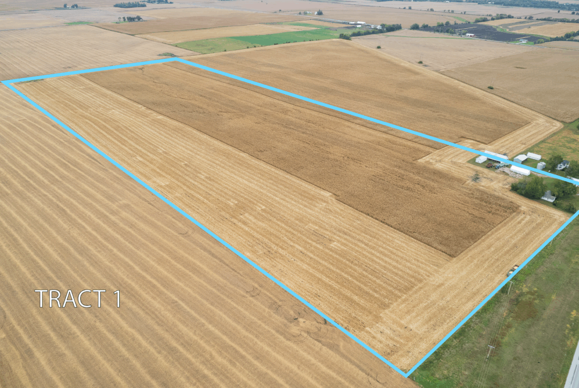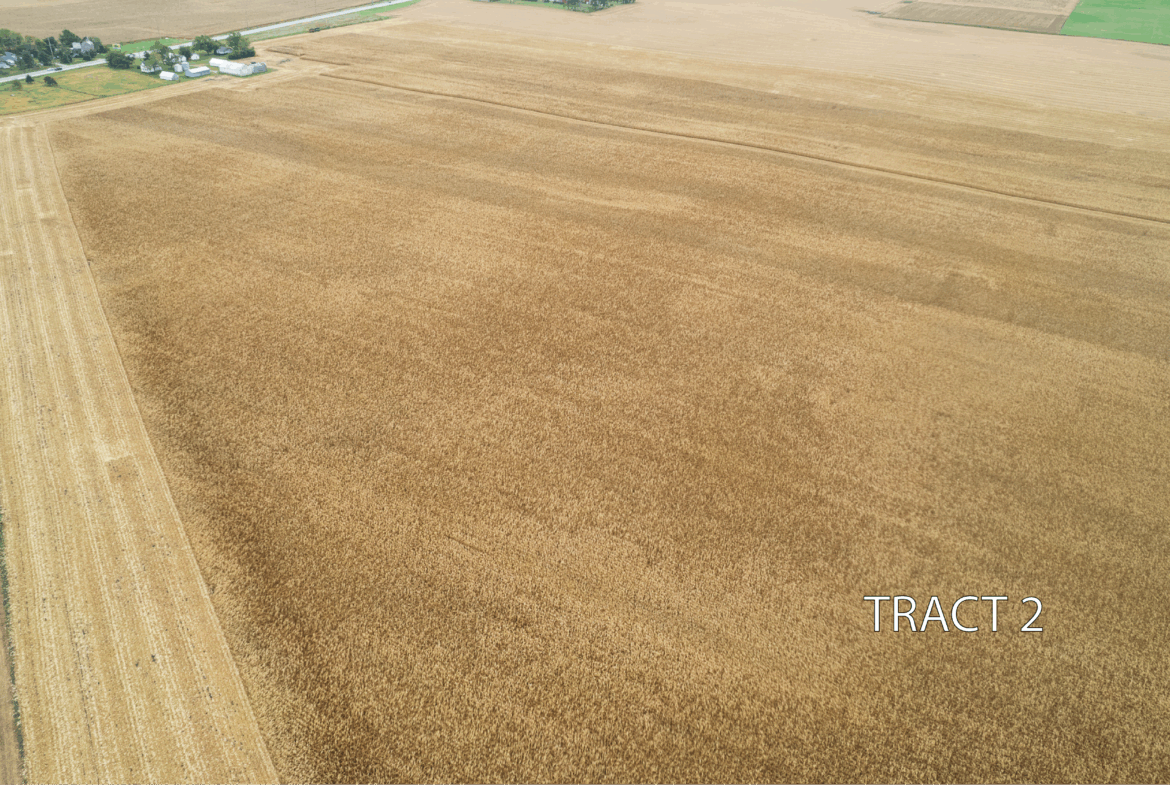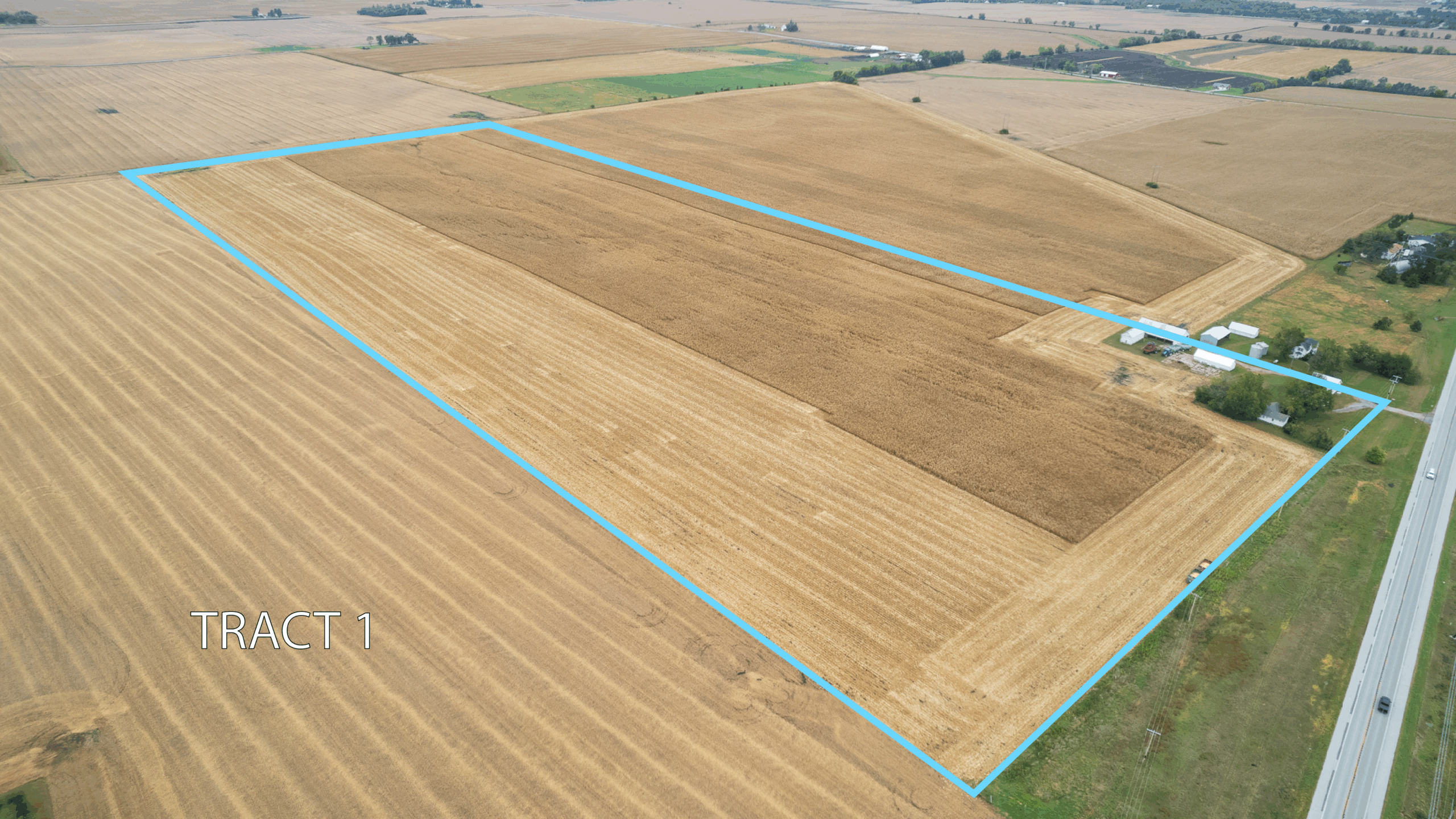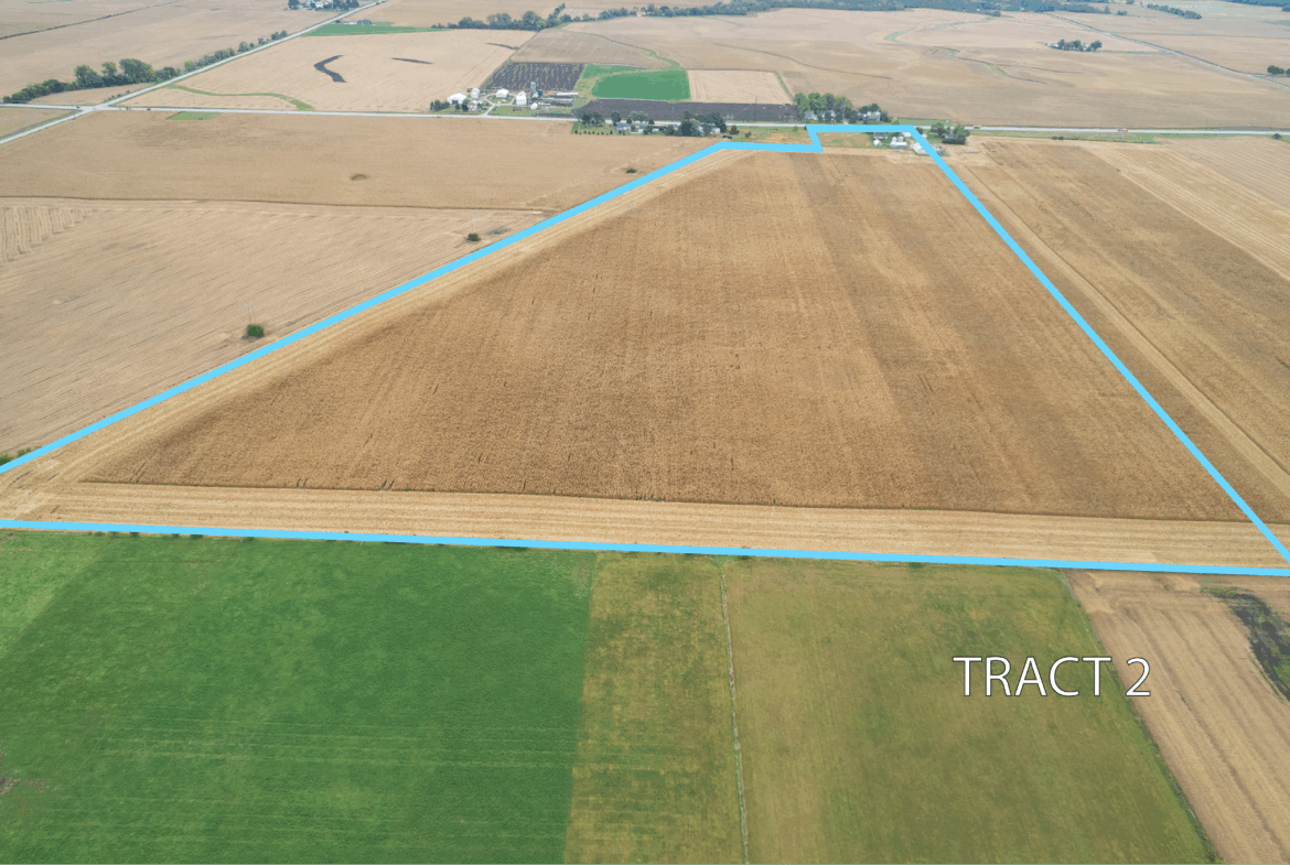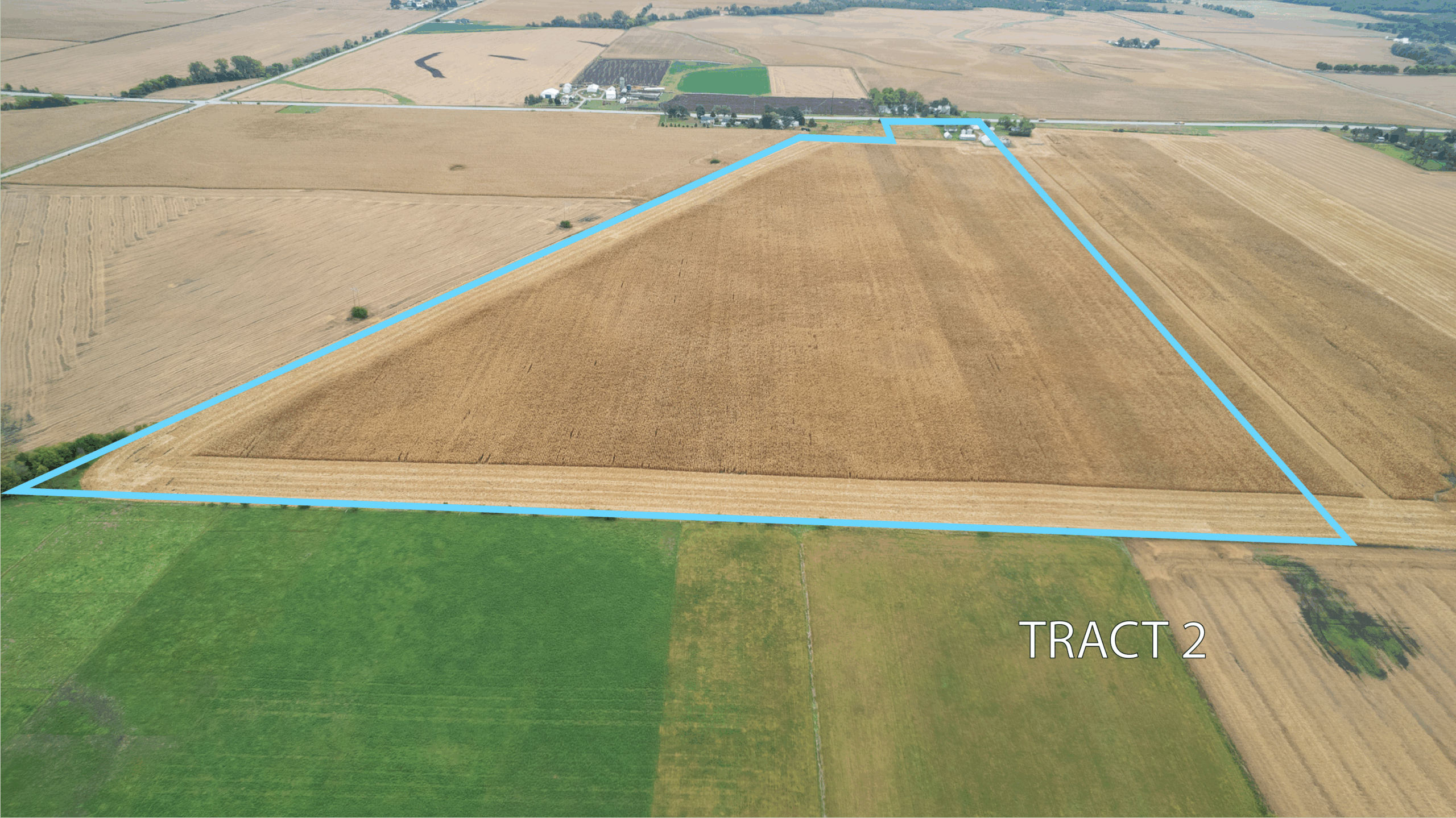 This is an ideal high quality tract with a 86.9 CSR2 and a 1.25 acre surveyed acreage. The acreage has a home and 6 outbuildings that the new buyer could sell separately. It is estimated there is 60.75 acres of tillable land. This parcel, if sold separately from Tract 2, will need to be surveyed and the total net acres will be the multiplier. There is an 8โ county tile in the western portion of the farm. No tile records are available for the eastern side of the cropland. There is approximately 14 acres of land zoned commercial on the east side that includes the 1.25 acre home site. The access to this tract is in the NE corner with a shared access with Tract 2.