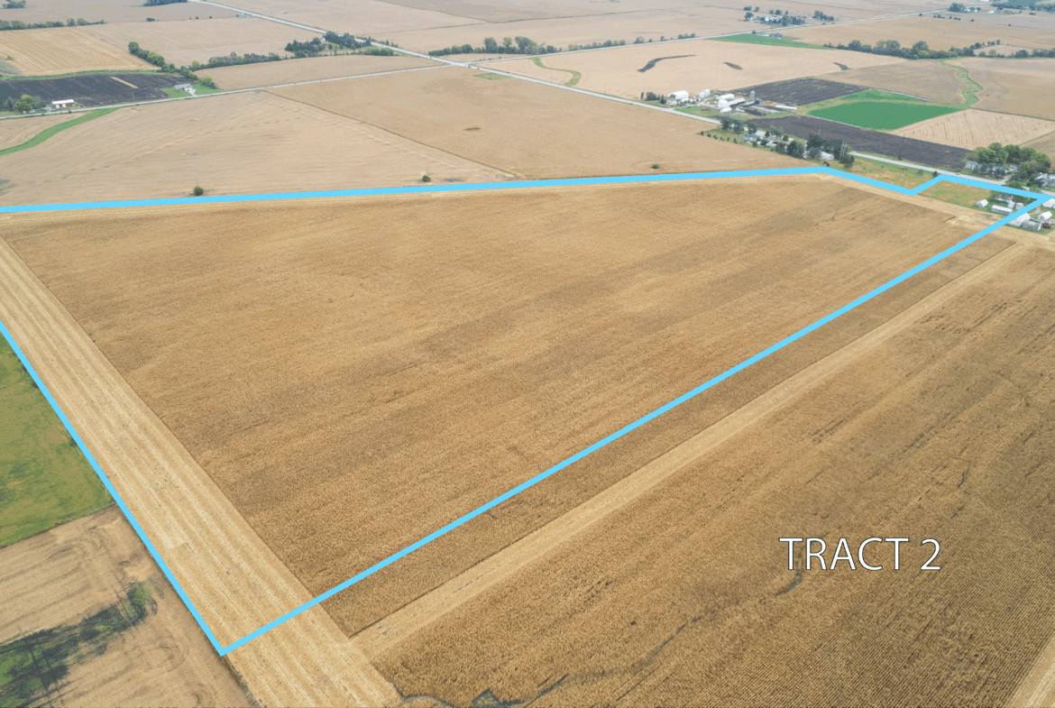 2 outbuildings and 2 grain bins that the new buyer could sell separately. It is estimated there is 65.9 acres of tillable land which includes the small pasture field north of the house. If sold separately from Tract 1 this tract will need to be surveyed and the total net acres will be the multiplier. There is a 16โ county tile running from the middle of the